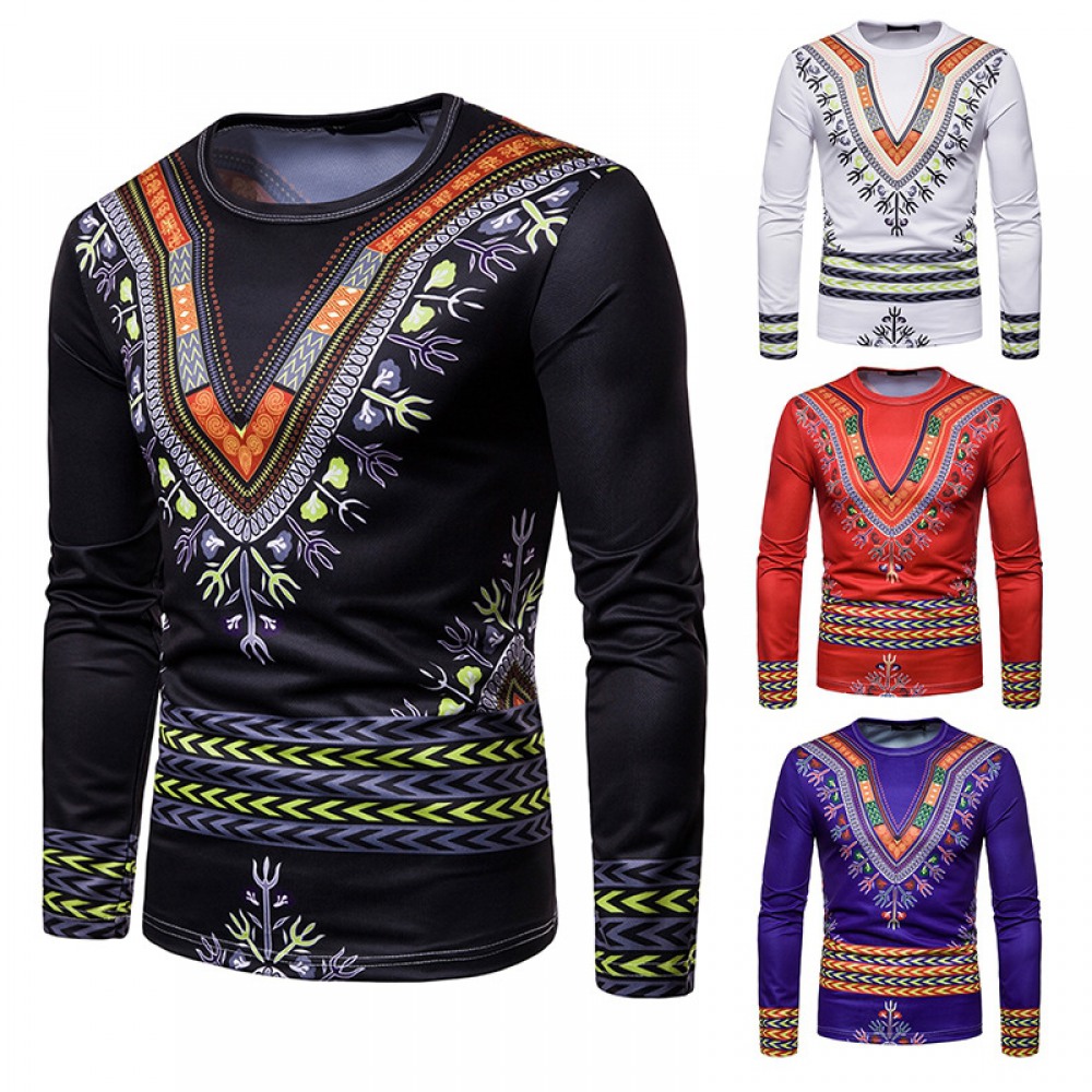 Men's Personality Ethnic 3D Printing Round Neck Long Sleeve T-Shirt
